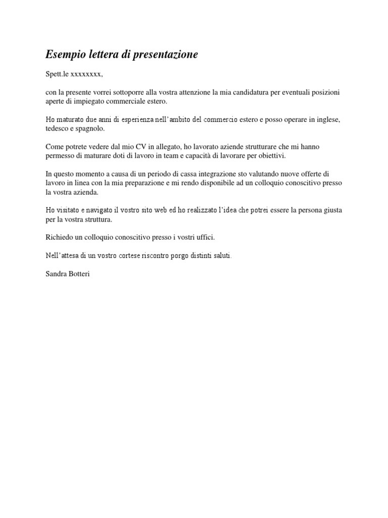 Esempi lettera di presentazione in inglese